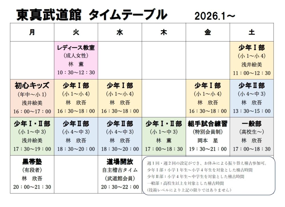 | 開催時間 土曜日 10:30~12:15(少年・一般・親子) 少年部 6,600円 年長~中学生 一般部 6,600円 高校生~成人 親子 2名 11,000円/3名 15,400円 | ||